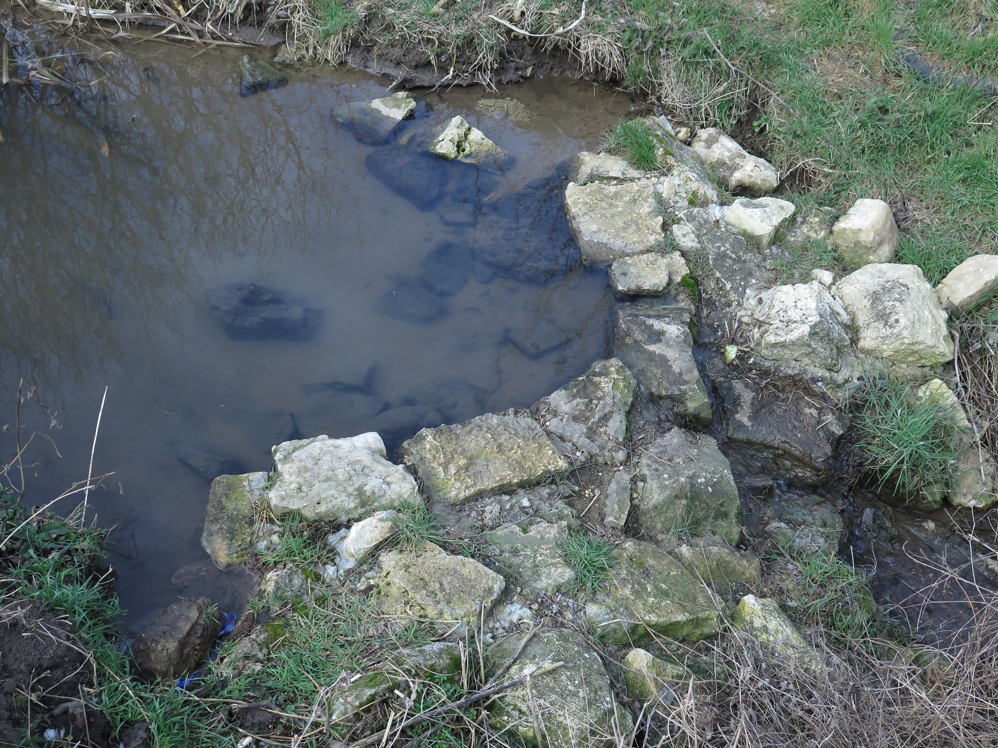Aкумулирана вода при него около 2 кубика. Чешмата, на която се направи работеше с около 600л на час дебит. Това е много малко при спомените, които имахме за нея (коритата едва хващаха водата тогава). Засадих блатен аир, ботомис, водна мента, другото го имаше. В нашия район беше тотална пролетна суша - поливах пролетни цветя в градината онази пролет. Никакъв дъжд или сняг 2 месеца след това. Май месец замерих, дебитът бе скочил на 850л на час.